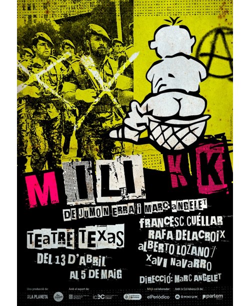 MILI KK és un espectacle de teatre documental verbatim que aconsegueix plasmar la riquesa creativa, combativa i utòpica del moviment de l’Objecció de Consciència i la Insubmissió. Un moviment de desobediència civil que va posar fi al servei militar, canviant per sempre la vida dels joves d’aquest país.