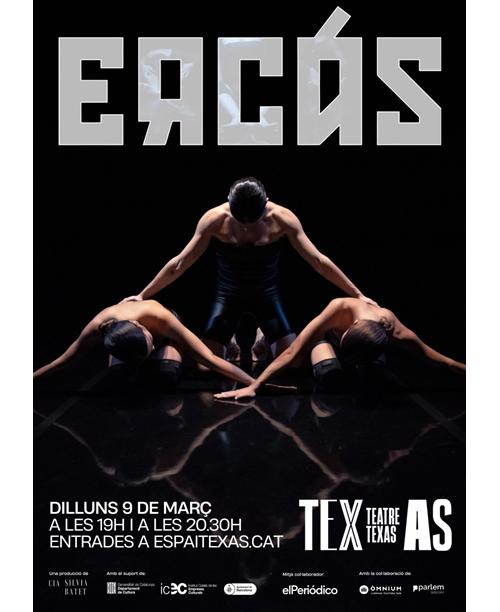 ERCÁS, dirigida per Silvia Batet, celebra la transformació i la resiliència explorant tres cossos femenins com un llenç mutable. Amb ritualitat, subtilesa i plasticitat, les ballarines creen un llenguatge visual que desafia percepcions tradicionals, mostrant el cos com a fràgil i poderós, estàtic i dinàmic, únic i múltiple.