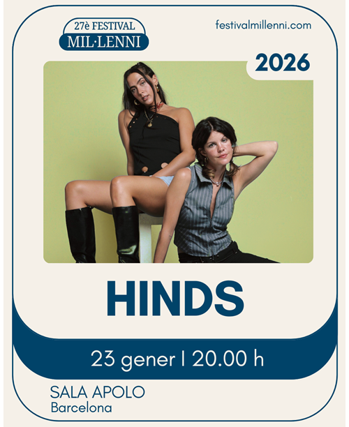 La banda madrilenya Hinds, referent de l’indie rock nacional amb reconeixement internacional. El duet format per Carlotta Cosials i Ana García Perrote arriba a la ciutat com a part del final de gira del seu quart àlbum, Viva Hinds (setembre de 2024), un treball celebrat per la crítica com “un retorn cru i honest”, produït per Pete Robertson, que inclou col·laboracions destacades amb Beck i Grian Chatten, i que marca un veritable renaixement per al grup.