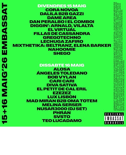 L’Embassa’t, festival de música independent del Vallès que se celebra anualment des de 2009 a Sabadell (Barcelona), ha esdevingut en els darrers anys un punt de trobada imprescindible pels amants del pop-rock, la música urbana i l’electrònica en directe. El cartell presenta, any rere any, una acurada selecció musical que descriu el bo i millor de cadascuna de les escenes, convertint-se en una parada obligatòria per molts artistes dins del circuit català de festivals.